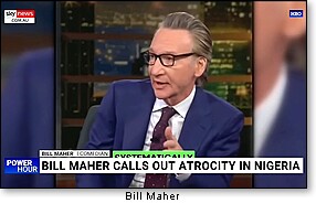 YOUTUBE — Sky News Digital Presenter Gabriella Power discusses comedian Bill Maher talking about the slaughter of Nigerian Christians. Ms. Power was joined by national director of Aid to the Church in Need Bernard Toutounji to discuss the atrocities. “Bill Maher has slammed the media for failing to report on the slaughter of Christians in Nigeria by Islamist groups,” Ms. Power said. “This is largely being ignored by the media. There are plenty of young people who are happy to go out and demonstrate against Israel … yet are silent about what’s happening in Nigeria.”... (more)