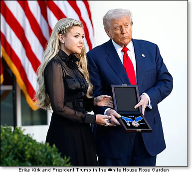 TOWNHALL — President Trump has posthumously awarded Turning Point USA Founder and legendary conservative activist Charlie Kirk with the Presidential Medal of Freedom, the highest civilian honor, on Tuesday. The ceremony took place in the White House Rose Garden on what would have been Charlie Kirk’s 32nd birthday. It was supposed to take place indoors due to bad weather, but the President told Charlie's widow, Erika Kirk, that "God was watching, and he didn't want that for Charlie." The White House saw nothing but sunshine for the ceremony.... (more)